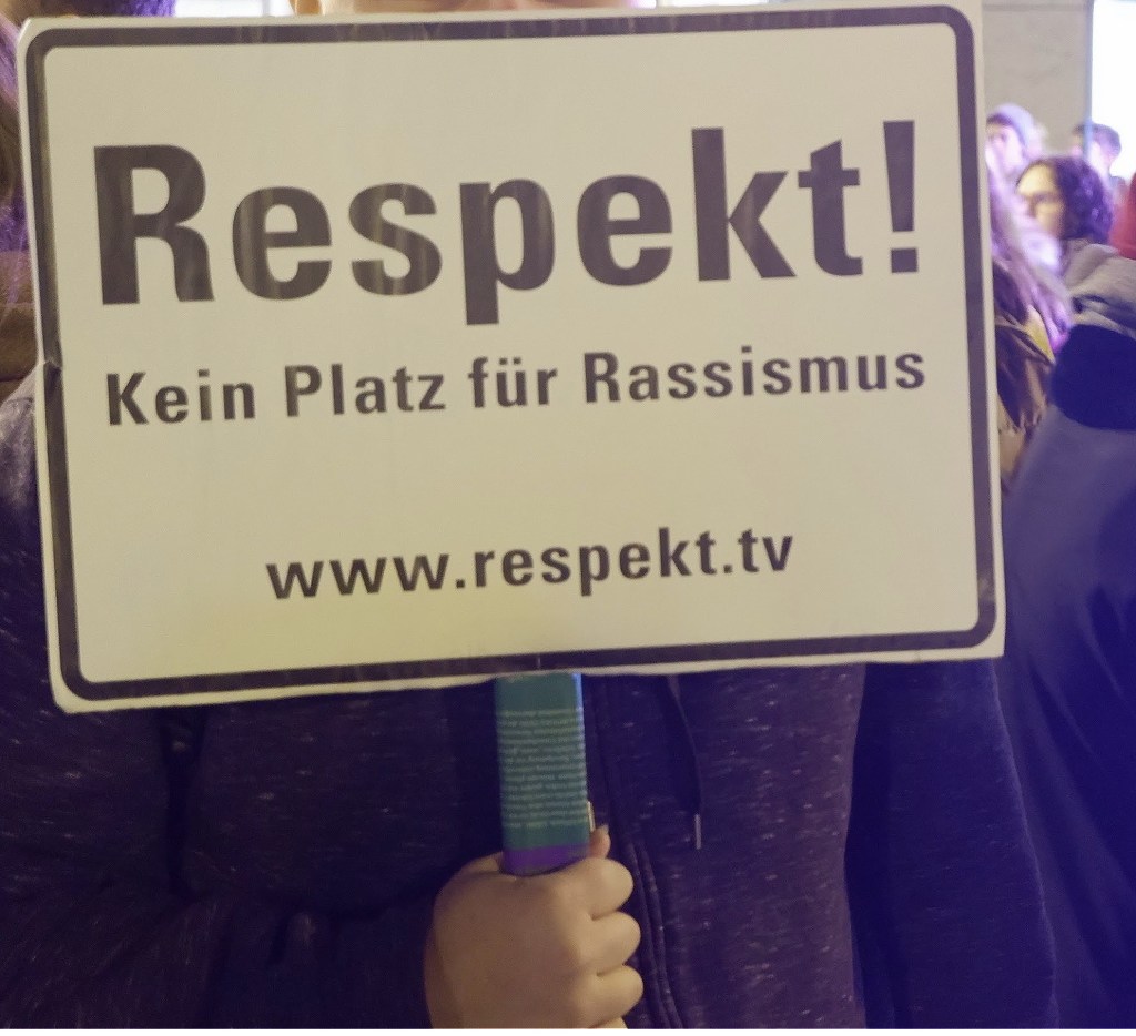 When the first batch of torch marchers arrives at a smaller station nearby, they are greeted with anti-Nazi rally cries: “Nazis Raus” – “Nazis Leave” and “Say it loud, say it clear, refugees are welcome here”.